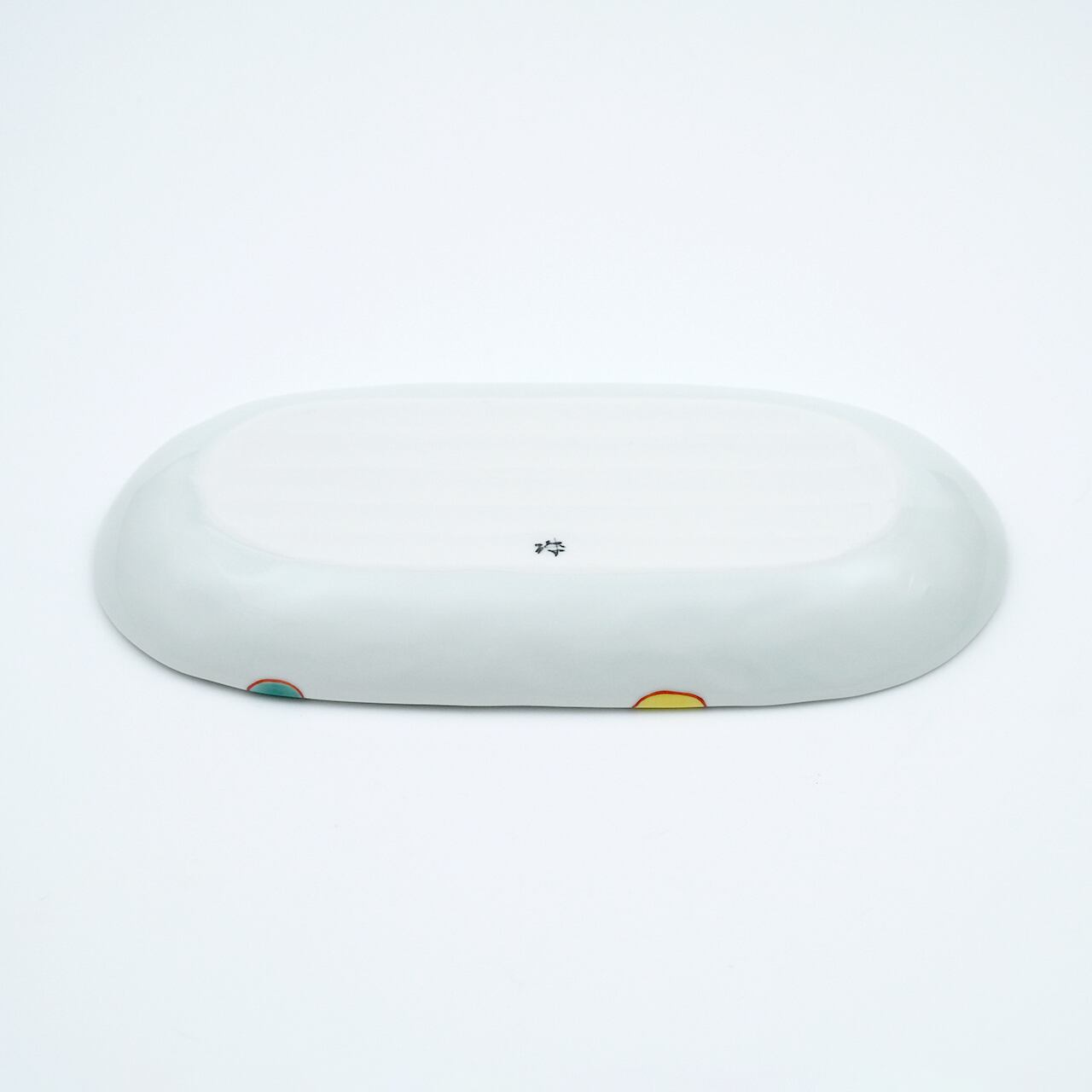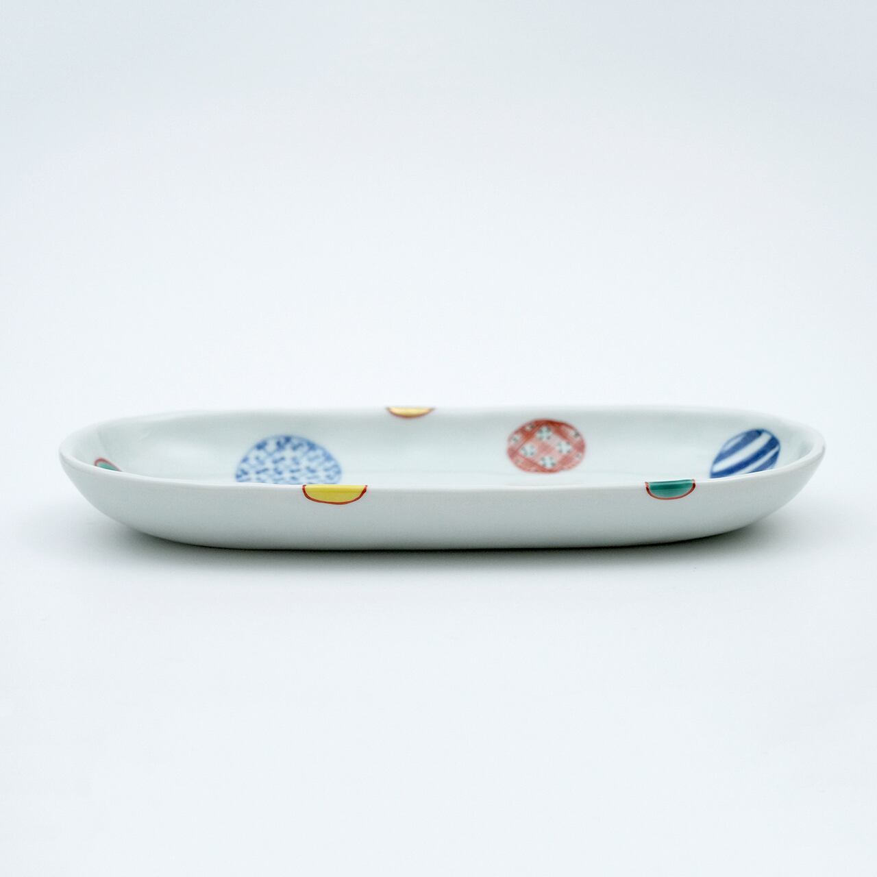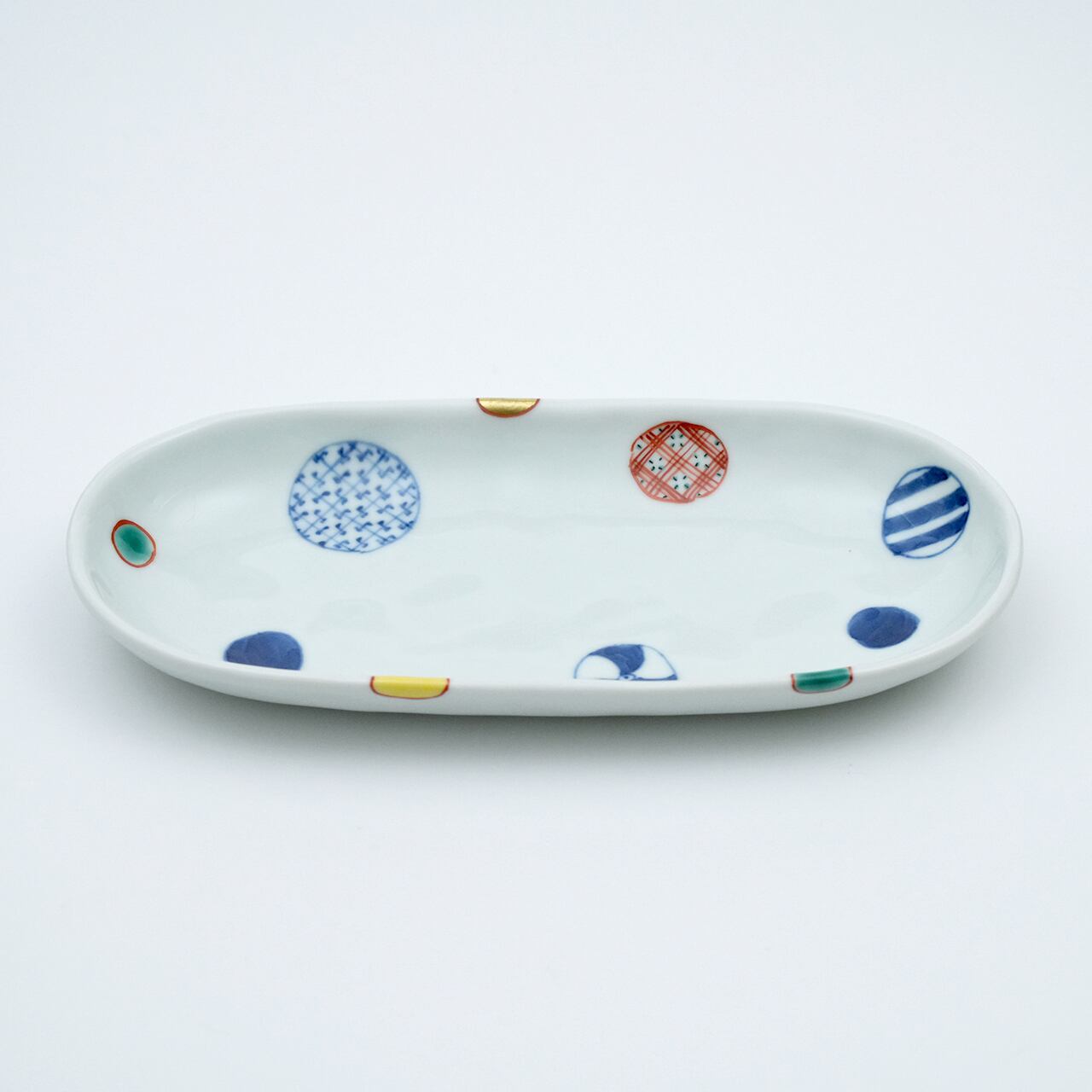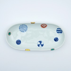 染錦地紋丸紋小判皿(大)