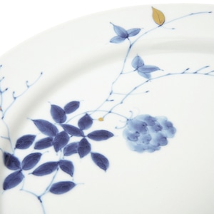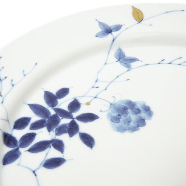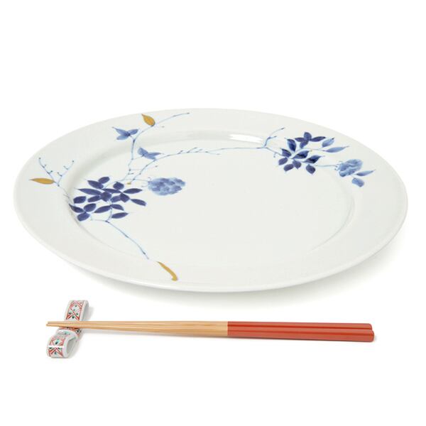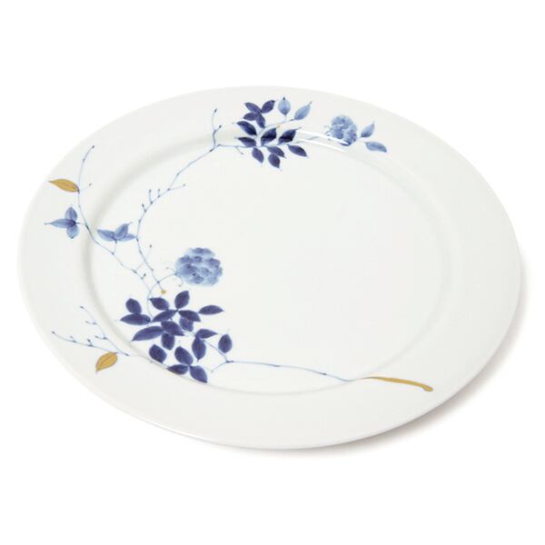 染付で描かれたバラ絵に金彩を施したエレガントで上品な人気絵柄「金彩ばら絵」シリーズの段付9寸皿です。 和食だけでなくフレンチ、イタリアンなどの洋食にもよく合うシリーズです。