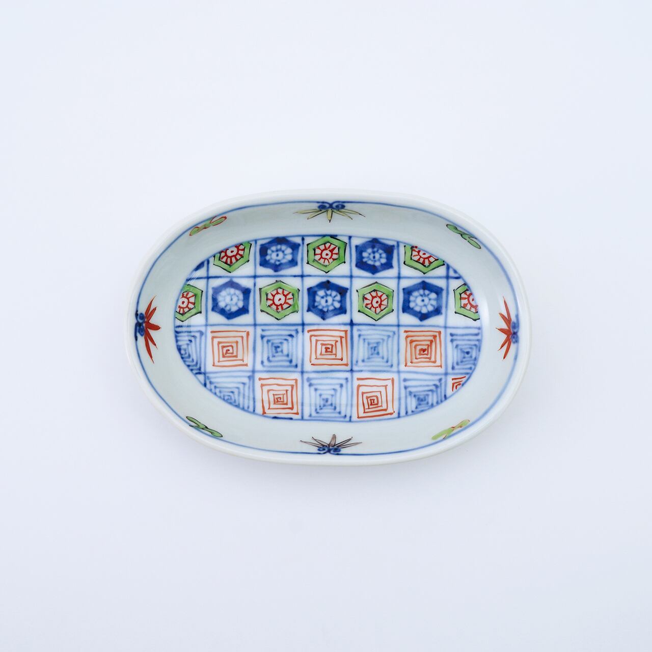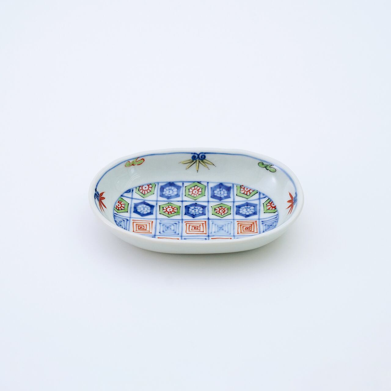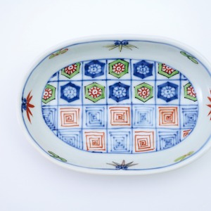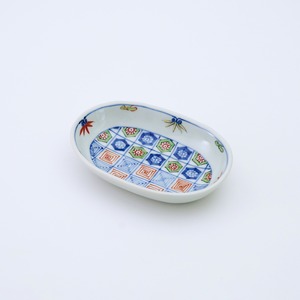 染錦更紗紋小判皿(小)