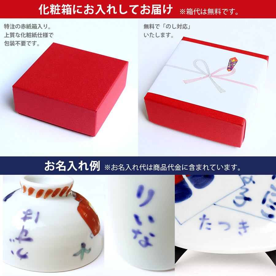 発売以来30年以上、世代をこえて愛され続けている福珠窯の名前入り子供食器「ピクニック男の子」2点セットです。ご自身のお子様用はもちろん、ご出産祝いや小学校ご入学記念など贈り物としてご利用いただいている大ベストセラーです。小皿にお名前をお入れいたします。(※レンゲにお名前は入りません)上質な赤紙の化粧箱に全商品をお入れしてお届け致します。のしも無料にて対応いたします。