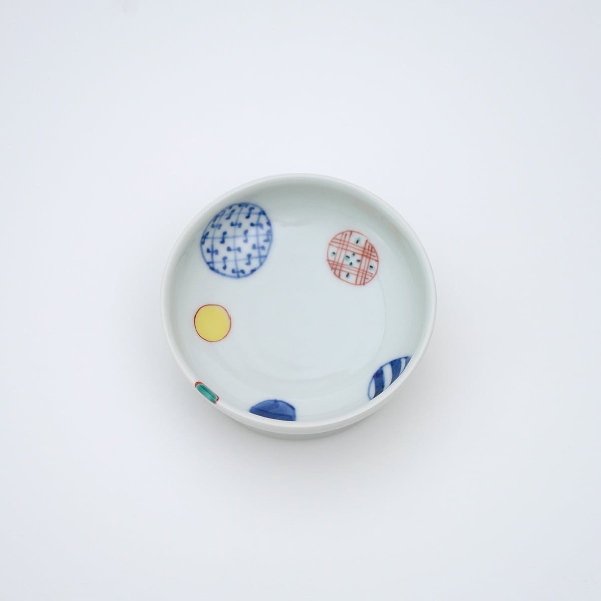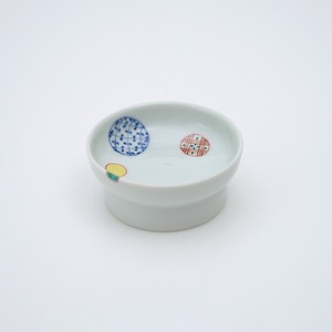 染錦地紋丸紋8.5cm高台小皿