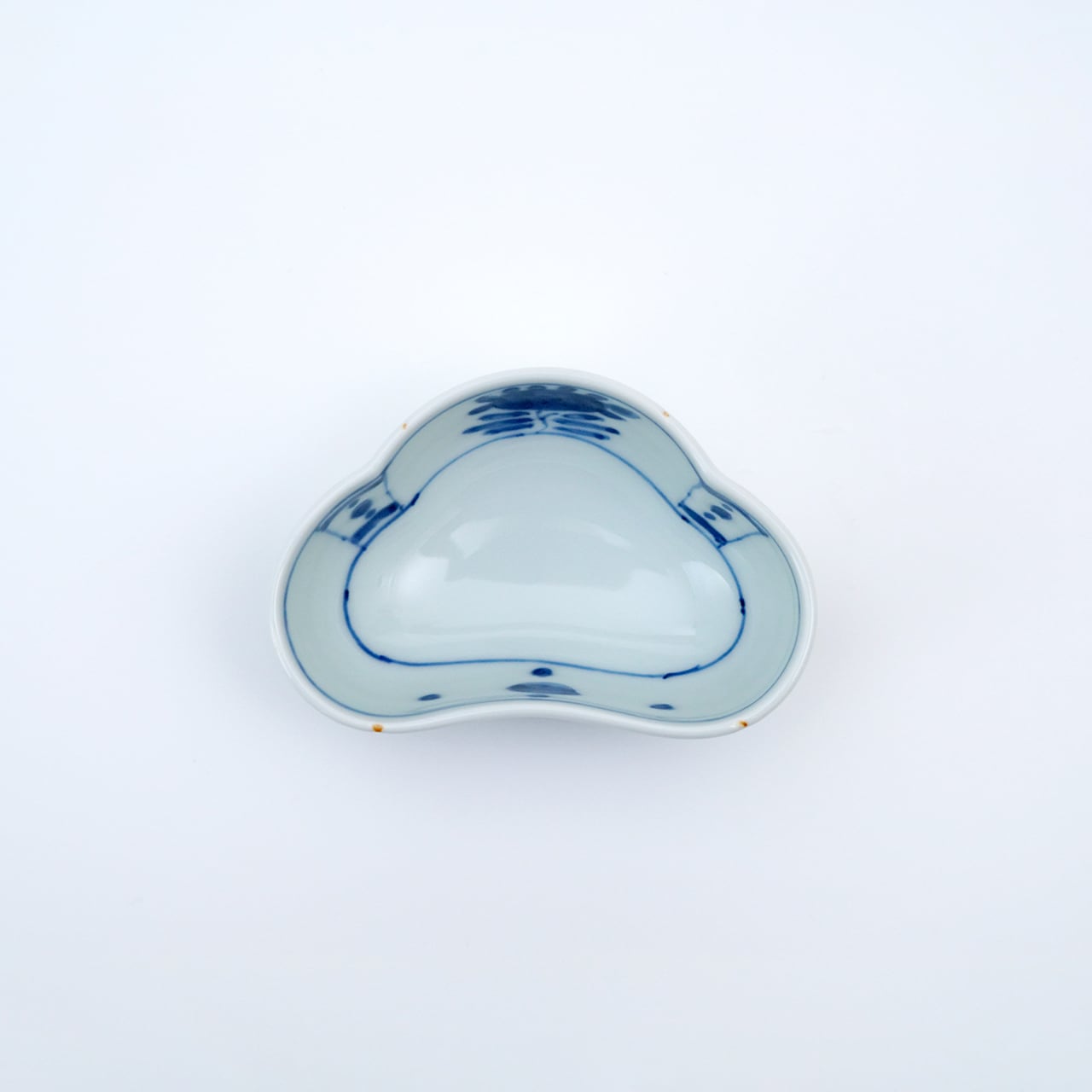 古典的な絵柄と松型が和風な千代口(豆鉢)。お漬物からちょっとしたおつまみなど幅広くお使いいただけます。