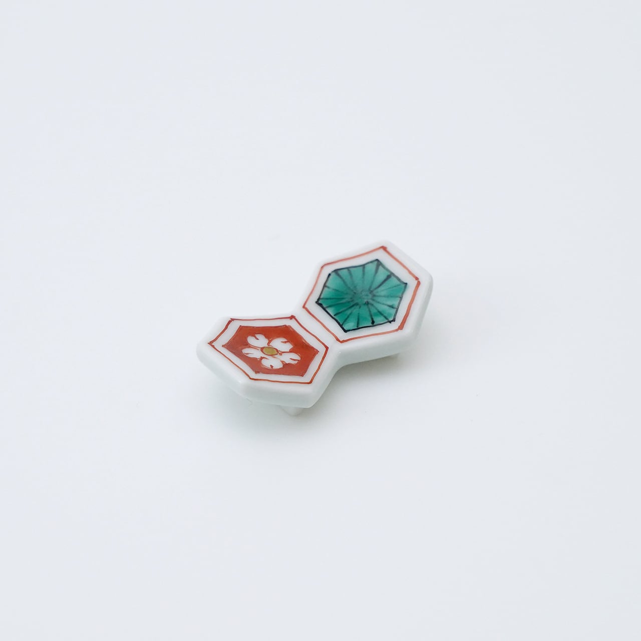 福珠窯の人気絵柄「色絵更紗紋」から絵柄の一部を取り出してアレンジし箸置きにしました。